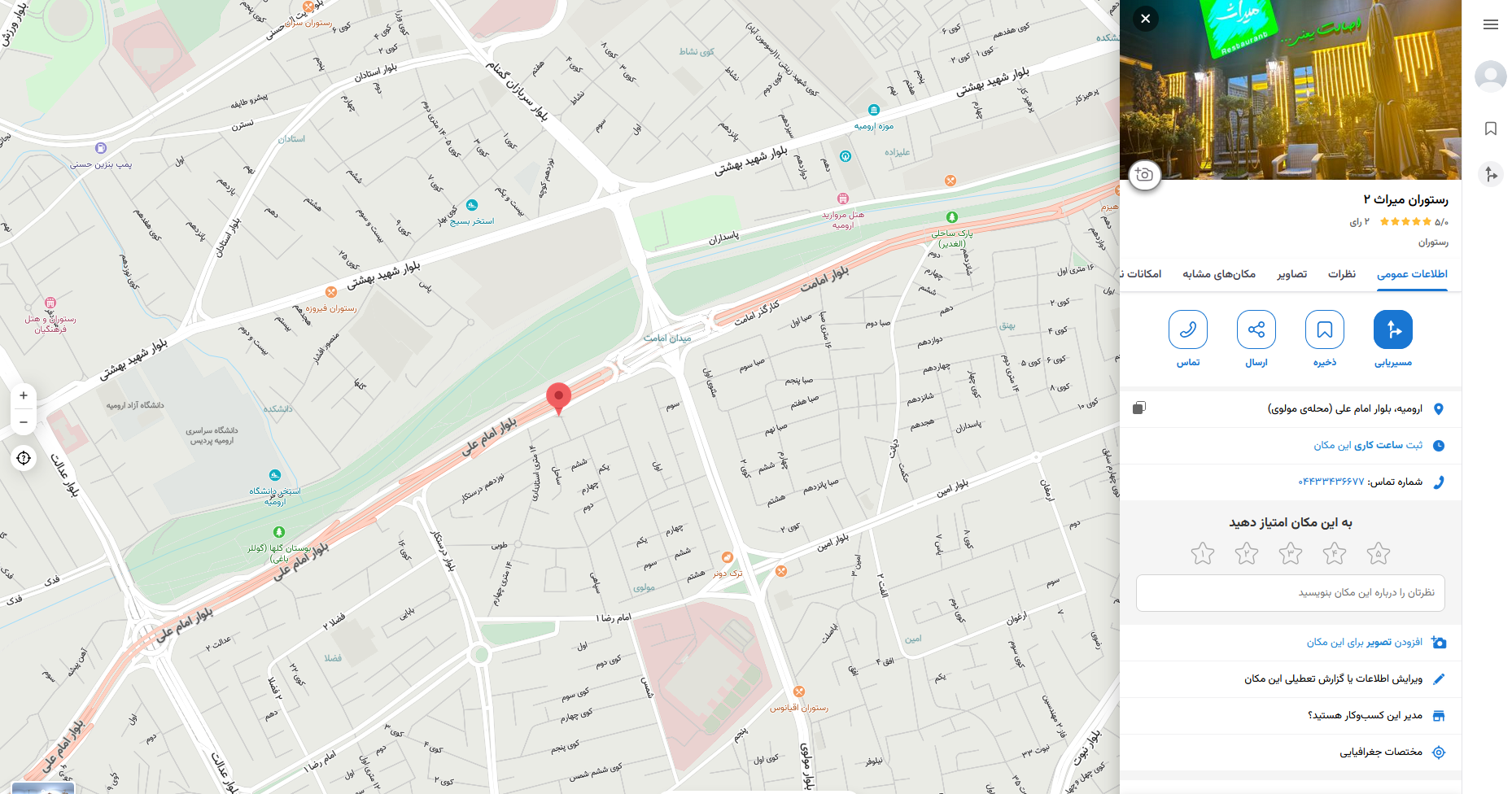 آدرس رستوران میراث در سایت مسیر یاب نشان : لینک صفحه